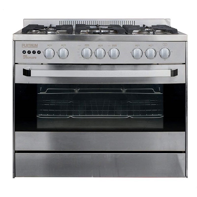 Cuisinière UNIONAIRE Platinum Smart - Type de Cuisinière: à gaz - Nombre de Feux: 5 -Grille: en fonte - Allumage automatique - Lampe de four - Moteur de gril - Ventilateur du four - Sécurité totale - Couleur: Inox - Garantie: 1an